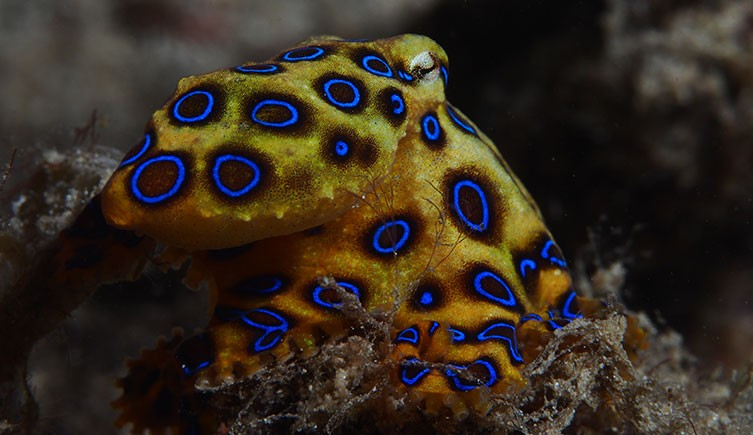 This aptly named cephalopod is very small, measuring no more than 9 cm (3.5 in) wide, but it is as small as it is dangerous. Each of these tiny guys possess a venom which is strong enough to kill 25 adults. Videos on social media have shown humans picking these octopuses up. Bad move. Their coloration may look tempting, but it's actually meant to be a warning to predators.