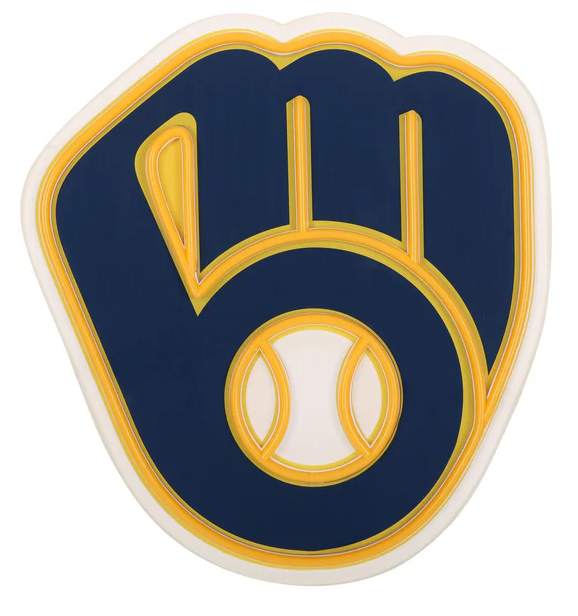 The logo is a baseball glove that has a lowercase "M" in the fingers and a "B" as the thumb and palm. Not only that, but according to the team themselves, the ball in the middle symbolizes the fans and the home city of Milwaukee being central to the team's organization.
