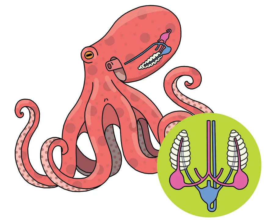 2 of the hearts pump blood to the gills, and one pumps blood throughout the octopus. You may have learned this fact from the 2016 Pixar film Finding Dory.