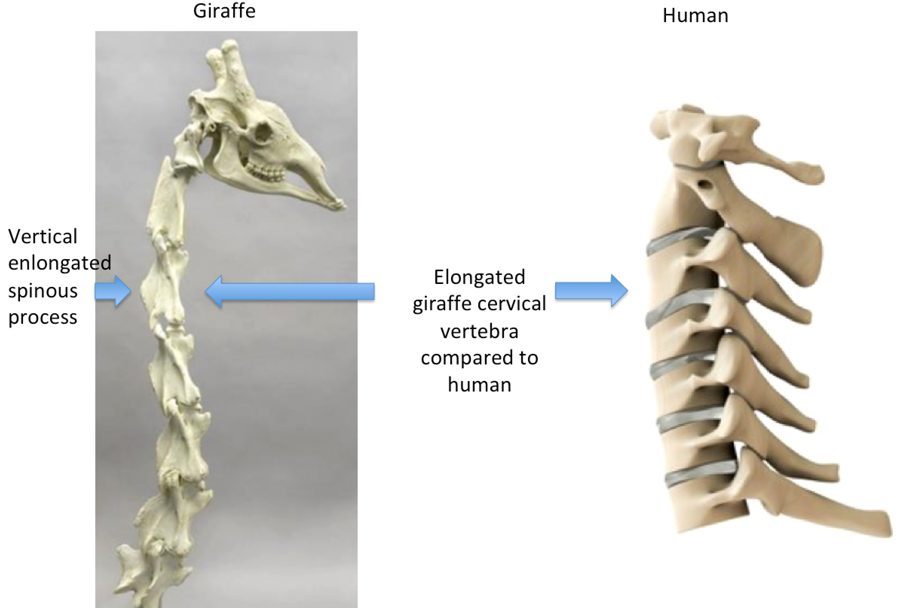 That number is 7, for those wondering. Although, needless to say, a giraffe’s neck bones are far larger and heavier than a human. Giraffe necks can actually weigh up to 272 kg (600 lbs), which is over 3 times more than the average adult human.
