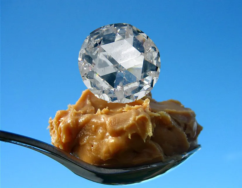 Before you reach for that jar of Jif, hoping to make yourself some diamonds, hear this first: to even attempt this, one would need laboratory conditions with high pressure and heat, which can't be replicated at home. However, with the right equipment, scientists can use the carbon found in peanut butter and put it through pressure millions of times greater than Earth's atmosphere to rearrange the carbon atoms into a diamond structure.