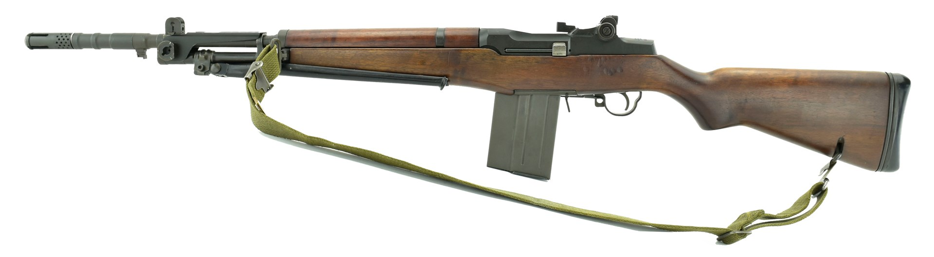 Mark IV, 42.5" (107.95 cm) long overall with a 21" (53.34 cm) barrel, full length wood stock, pistol grip, and heavy bipod.