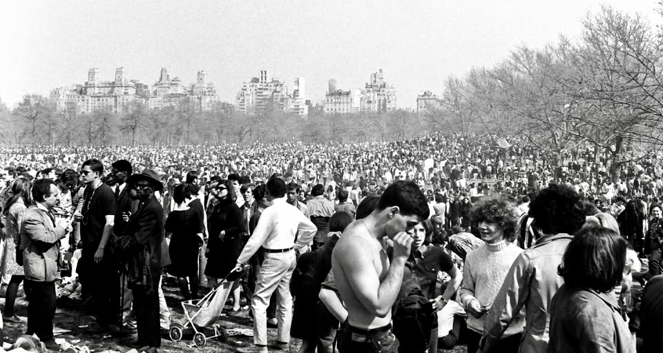 In one of the biggest events of the hoax, on Easter Sunday, 1967 (which fell on March 26), a Human Be-In event was attended by around 10,000 people in New York City. According to the paper New Left Notes, which was run by the Students for a Democratic Society organization, cameramen were anxious to film a "banana deity and its followers." Instead, followers reportedly waved Chiquita emblems, gave the banana pledge ("one nation, under banana, with liberty and justice for all") and the banana salute, which was your middle finger up and bent. In August of 1967, a banana was featured at a demonstration for the legalization of marijuana.
