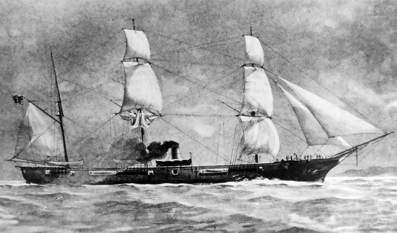 But it wasn't until February 17, 1864, that the submarine cemented itself in maritime warfare history. That night, the submarine became the first one to sink an enemy vessel in war. The USS Housatonic was an 1,800-ton sloop-of-war steamship that had a wooden hull and twelve cannons. On that night, she was stationed in Charleston Harbor as part of the Union's blockade. The Hunley struck the Housatonic with the spar torpedo, which exploded. The Housatonic sank in five minutes, with 5 crew members on board dying in the process. But after this, the Hunley didn't return to base. And what happened to it would be a mystery for the next 131 years.