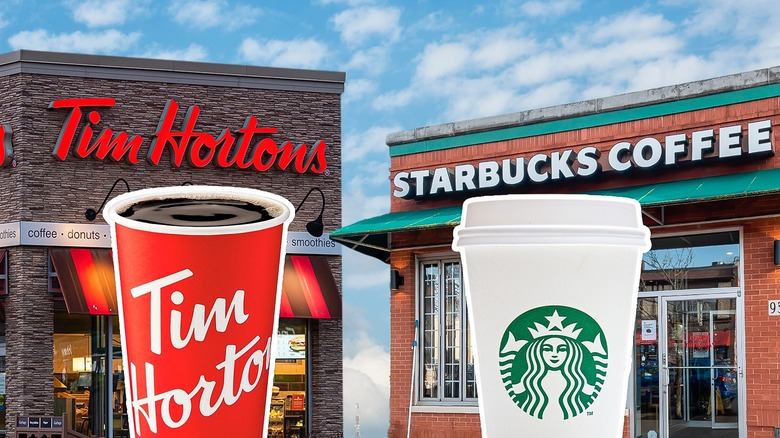 In terms of a warm beverage in the morning, both countries have their own ways. Starbucks (and, to a certain extent, Dunkin' Donuts) are outstanding examples. Tim Hortons is commonly known as the place where Canadians will go for a donut and coffee, among other things. Though there are Starbucks in Canada and Tim Hortons in the US, each side likes to keep its chain to itself.